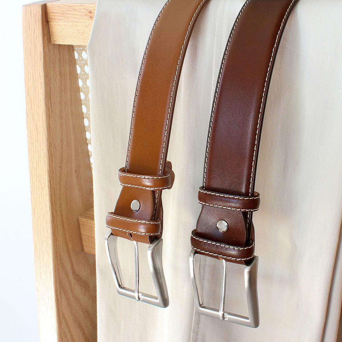 Richly nuanced, distinctively personal — our hand-buffed leather belts celebrate individuality in craftsmanship. Each piece is worked by hand to reveal natural highs and lows in tone, meaning no two belts are ever exactly alike. Available with either tone-on-tone or contrast stitching, and in widths of 30mm, 35mm or 40mm, the collection shifts effortlessly between polished formality and relaxed modern style.